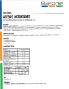 O Adesivo Instantâneo desenvolvido pela Barone é ideal para colagem de metais, plásticos, papéis, madeiras, cortiças, porcelanas e borrachas em superfícies com ou sem porosidade. Seca rapidamente e apresenta alta resistência, média viscosidade e excelente aderência.