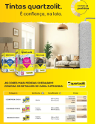 A linha de tintas da quartzolit está disponível em três categorias. A Toque Fino quartzolit é uma tinta premium com excelente cobertura, acabamento perfeito com alta cobertura e alta durabilidade, é ideal para ambientes internos ou externos. A Rende Mais quartzolit é uma tinta standard ideal para áreas internas ou externas, é superconcentrada e consistente o que proporciona alto rendimento além de oferecer uma alta cobertura e Parede Nova quartzolit a tinta econômica ideal para ambientes internos, com baixo odor e função antimofo). Estão disponíveis nas principais cores do mercado, em galões de 3,6 l ou latas de 18 l.