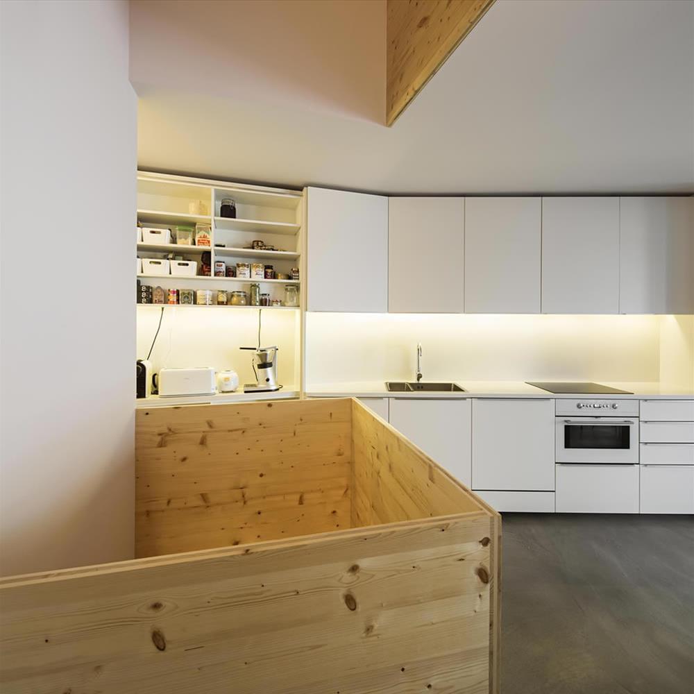 O átrio (na parte superior direita da foto) também funciona como uma chaminé térmica para arrefecimento passivo durante a primavera e o verão | Foto/imagem: Nelson Garrido